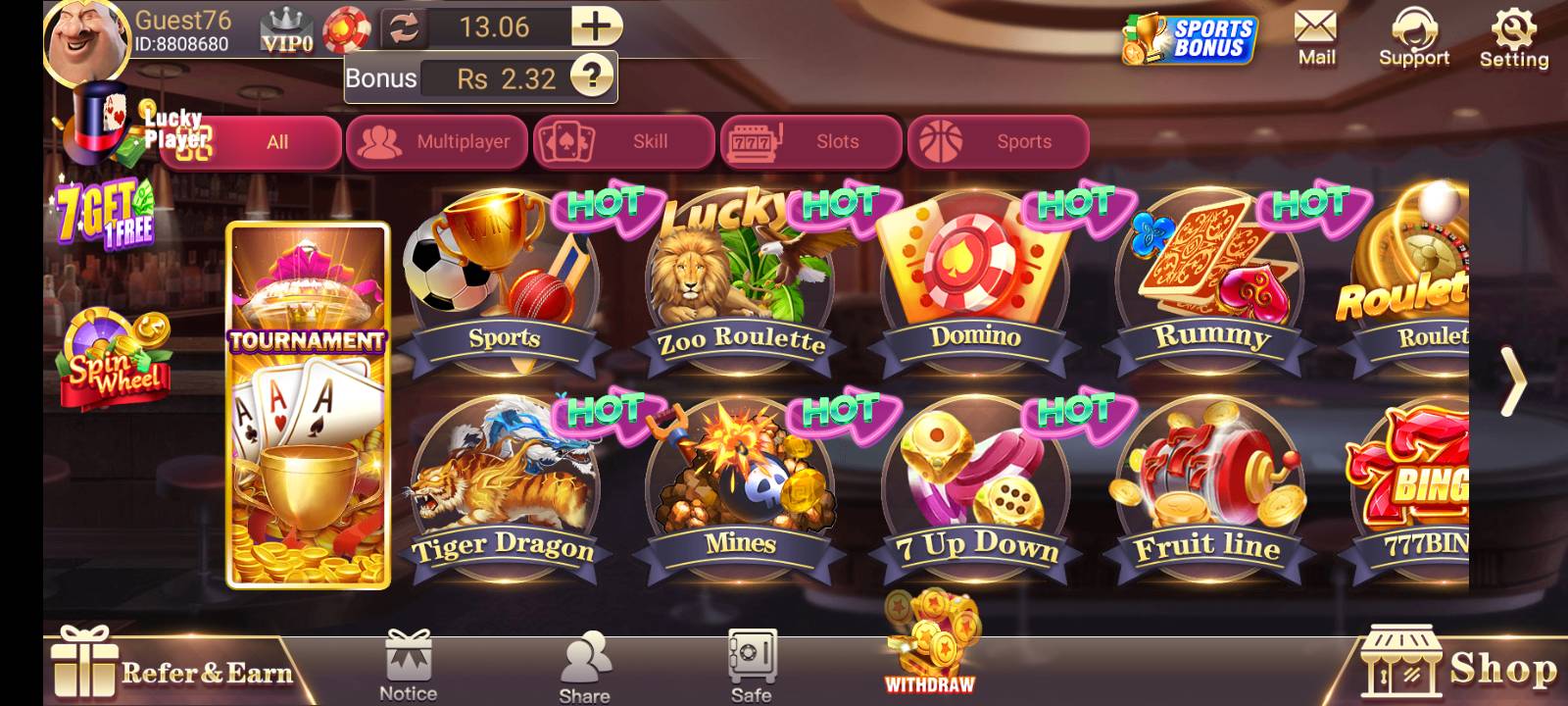 Multiple Game Choices: You can enjoy a wide range of games like Teen Patti, Rummy, Poker, Crash, slots, blackjack, roulette, and many more.